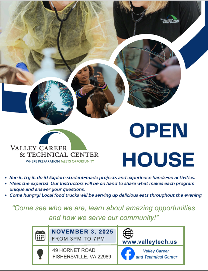 Valley Career & Technical Center and Shenandoah Valley Governor’s School Welcomes Prospective Students and Our Community to an Open House on November 3, 2025
